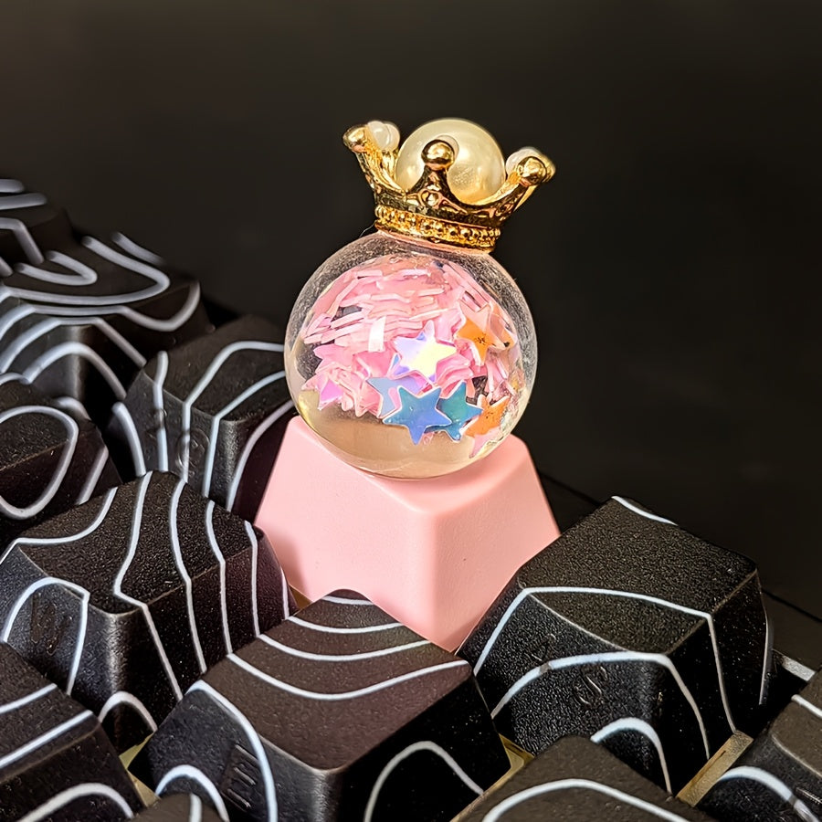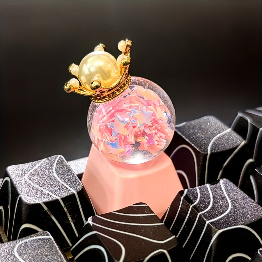 迷你公主皇冠水晶球键帽 - 手工定制Cherry高度 粉色可爱女生礼物 生日节日键帽