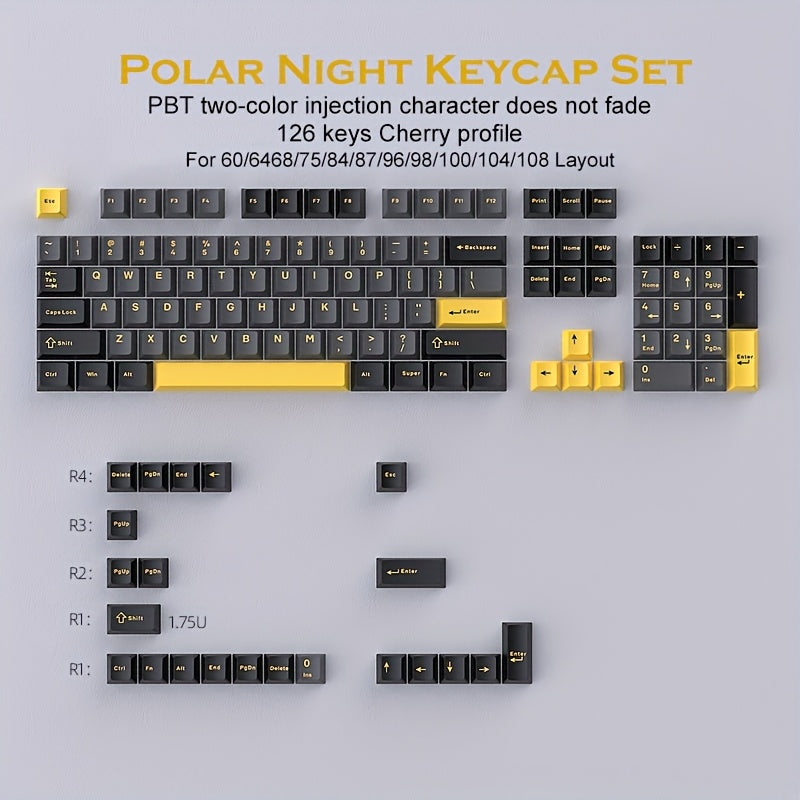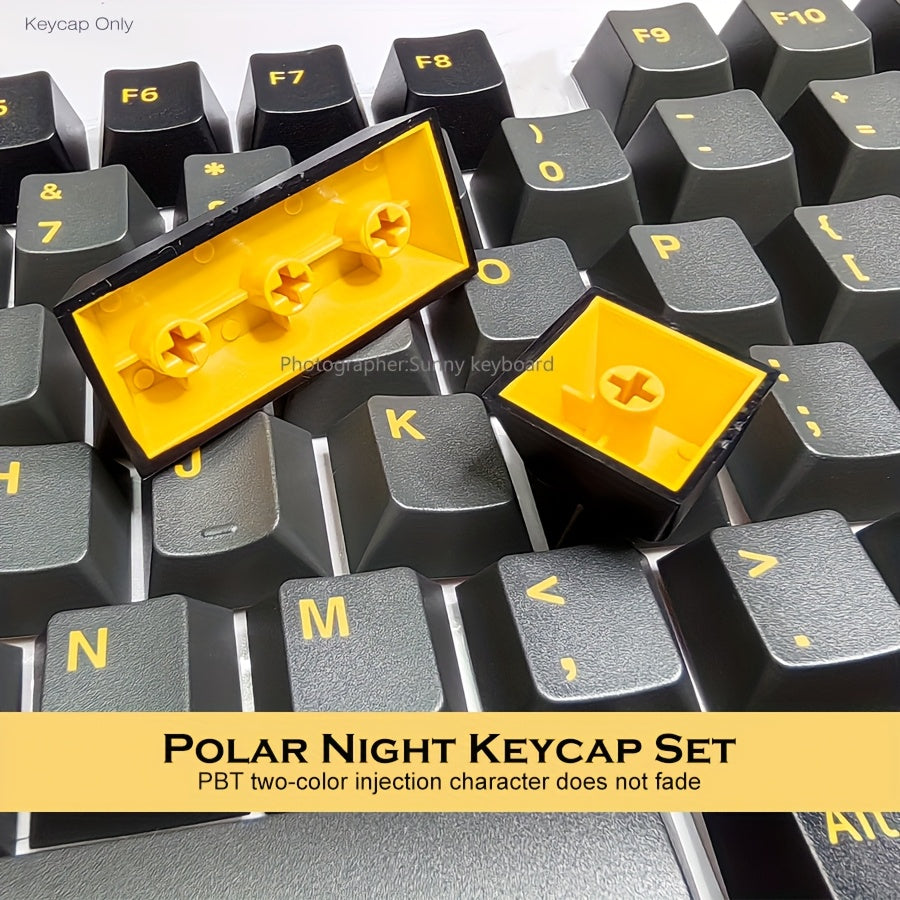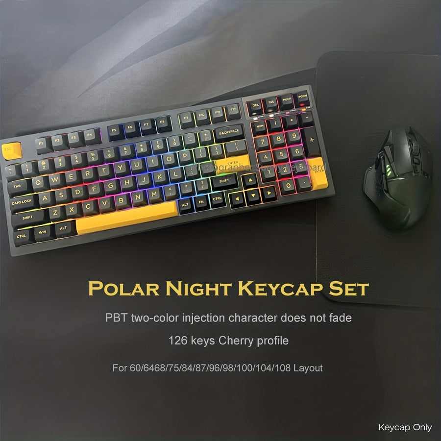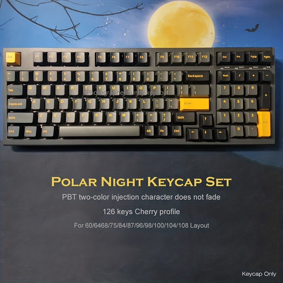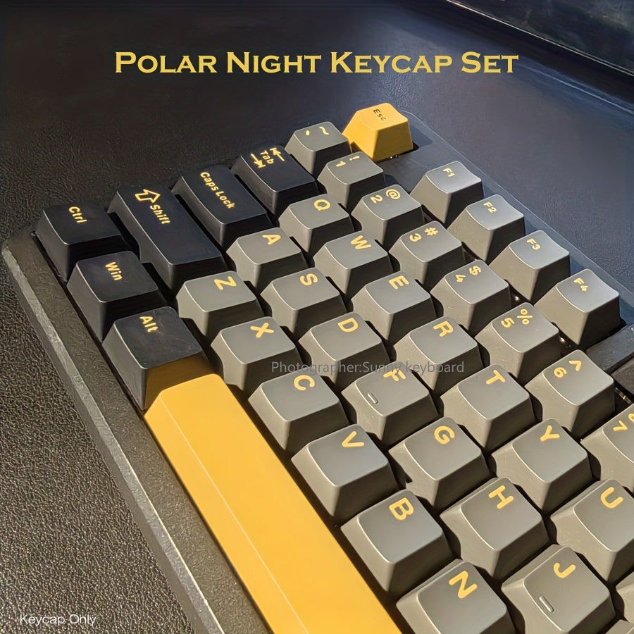 极夜黑橙键帽套装以北极极夜为灵感,将深邃的黑色与炽热的橙色完美融合。如同极夜中的极光,黑色键帽搭配橙色点缀,营造出强烈的视觉冲击力,为你的键盘带来独特的暗黑美学与活力气息。