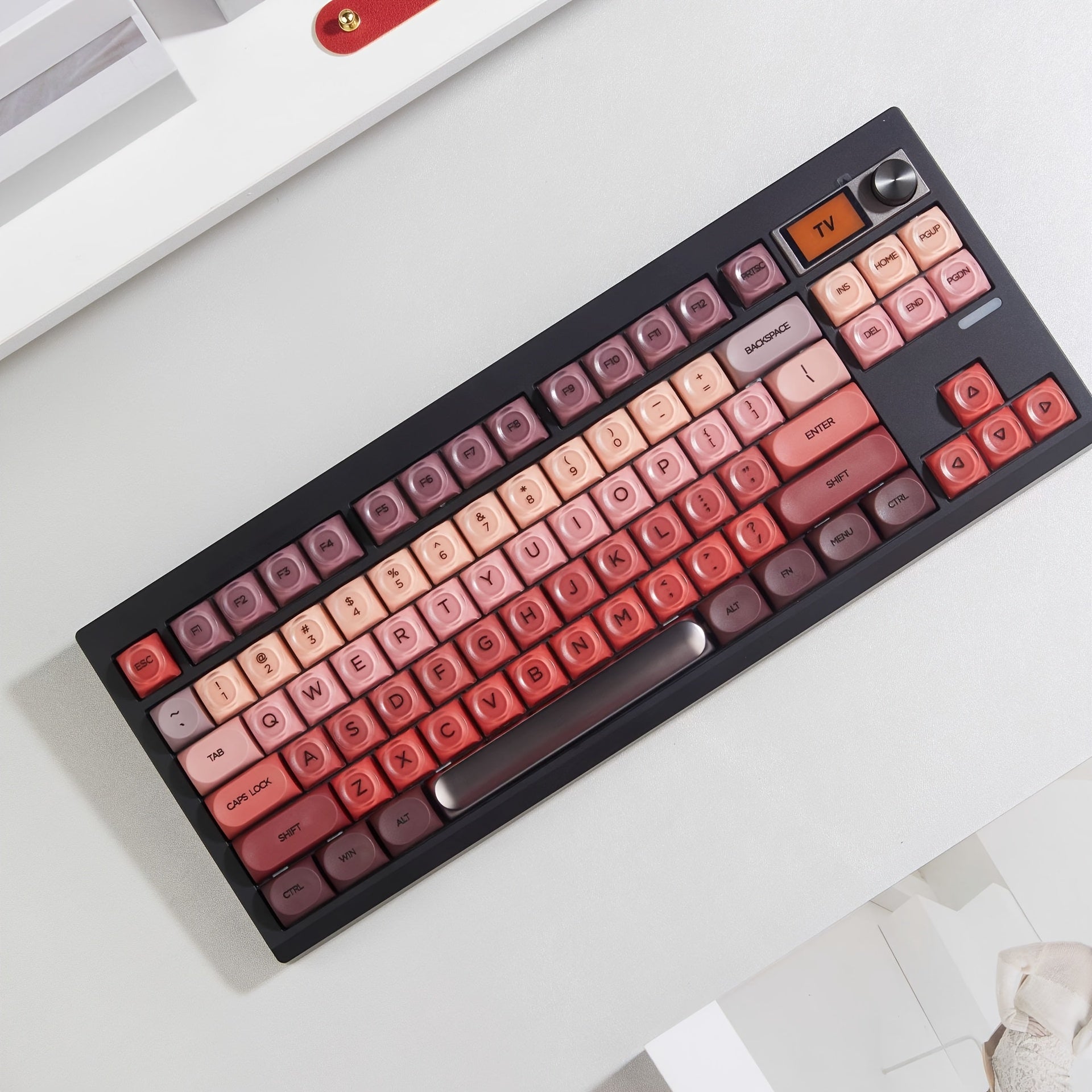 口红色渐变键帽 130键 HOA高度 PBT球帽