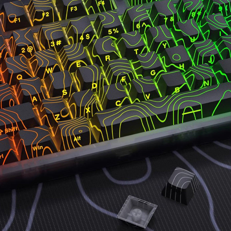 Navigate your workflow with precision. The Black Topographic keycap set brings the intricate, data-rich beauty of a surveyor's map to your keyboard. Each key is adorned with crisp, elevated contour lines, creating a tactile and visual landscape that speaks to clarity, depth, and exploration.